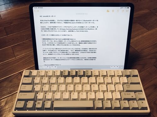 キーボードとiPad年末にiPad Proを新調し、ブログなど文章書きの環境を一新するべく Bluetoothキーボードを購入したので、感想を書いてみたい。中国製のNiZ plum ATOM66 というキーボードだ。NiZ 静電容量無接点方式 35g荷重 USB/Bluetooth 4.0両対応 コンパ…